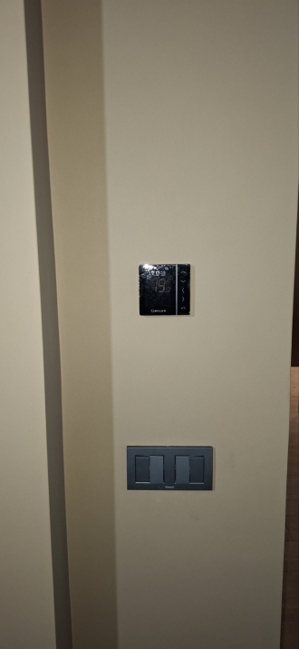 Еднофамилна къща с. Кирилово, на два етажа с площ за отопление и охлаждане от 100 м2. Монтирана е Инверторна термопомпена система „Въздух-Вода“ разделен тип EHS TDM PLUS, работеща на отопление и охлаждане.