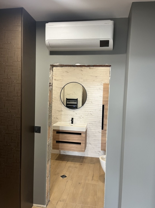 През отоплителния сезон тя захранва Подово Лъчисто Отопление(ПЛО), а през охладителния сезон вътрешни тела на директно изпарение снабдени с Wind-Free™ иновативна технология на Samsung за най-ефективно поддържане на комфортно ниво на прохлада, без неприятното усещане за студен вятър, чрез внимателно разпръскване на въздуха през 23 000 микро въздушни отвора в корпуса на климатика.