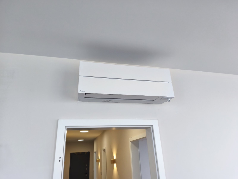 В дневната е поставане машина от сетията LN, която се отличава с вътрешни тела с изтънчен модерен дизайн и широка гама от характеристики, които правят този стилен, енергийно ефективен климатик подходящ както за дома, така и за малки търговски обекти. Климатиците от тази линия разполагат и с вграден “3D i-see сензор“, който автоматично улавя човешко присъствие в помещението. Системата за пречистване на въздуха “Plasma Plus Quad” с ефективна плазмена технология филтрира дори микроскопични частици от въздуха. Патентованото Mitsubishi Electric покритие предотвратява полепване на прах и замърсявания върху филтъра. Уникалният дизайн с двойни ламели позволява въздушният поток да бъде персонализиран, за да отговаря на различните зони на стаята, чрез независимо насочване на въздуха нагоре, надолу, наляво и надясно.