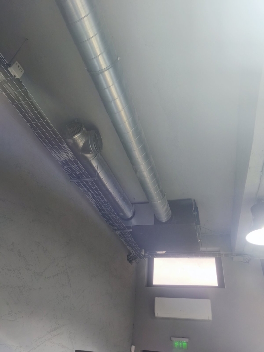 Изградена е и смукателна вентилация за тоалетните състояща се от канален вентилатор на CAIROX от серията BCS и въздуховодна мрежа от поцинкована ламарина – кръгли въздухопроводи тип “Spiro”.