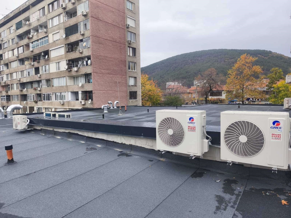 При преустройството на магазин за хранителни стоки във фитнес зала са цялостно изградени системи за климатизация, общообменна смукателна и нагнетателна вентилация и вентилация на бани и тоалетни.
